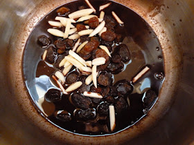 3. Add the almonds and raising and stir.